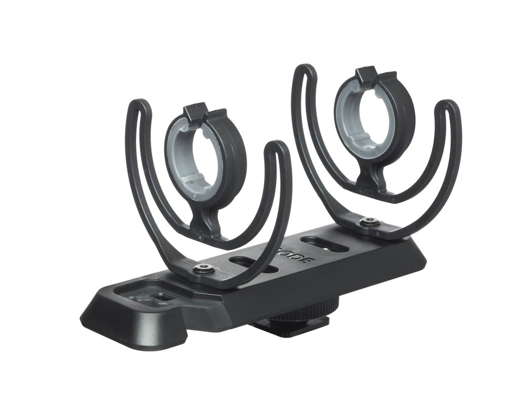 The SM3-R is a suspension shock mount with camera shoe adaptor for mounting various RØDE microphones onto a camera via the standard hot/cold shoe mount.
