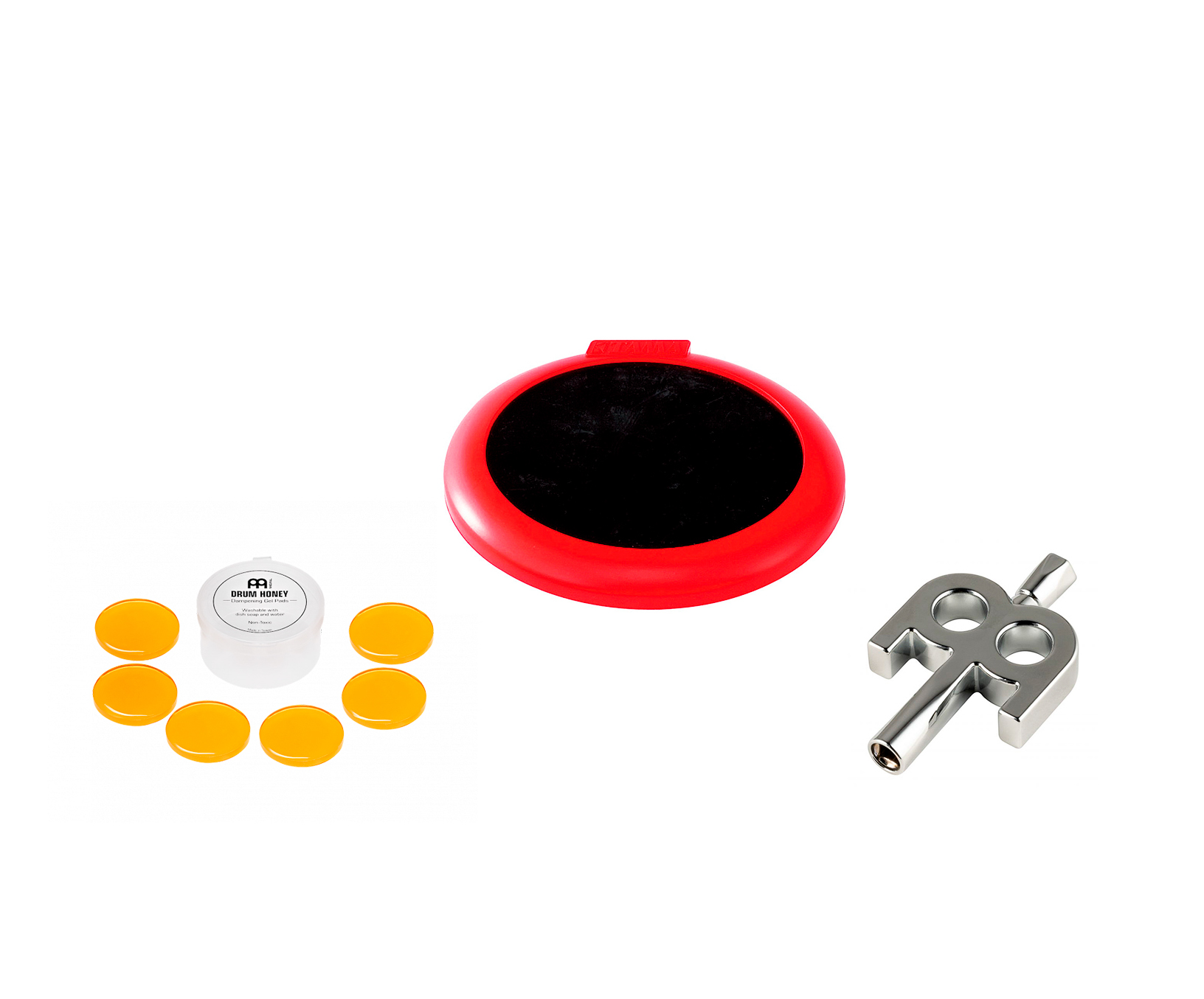 Mainio lahjapakkaus rumpalille, mikä sisältää rumpujen säätämisessä keskeisen rumpuavaimen, harjoitusalustan hiljaiseen treenaukseen sekä Drum Honey -geelivaimentimet rumpujen äänen muokkaamiseen.