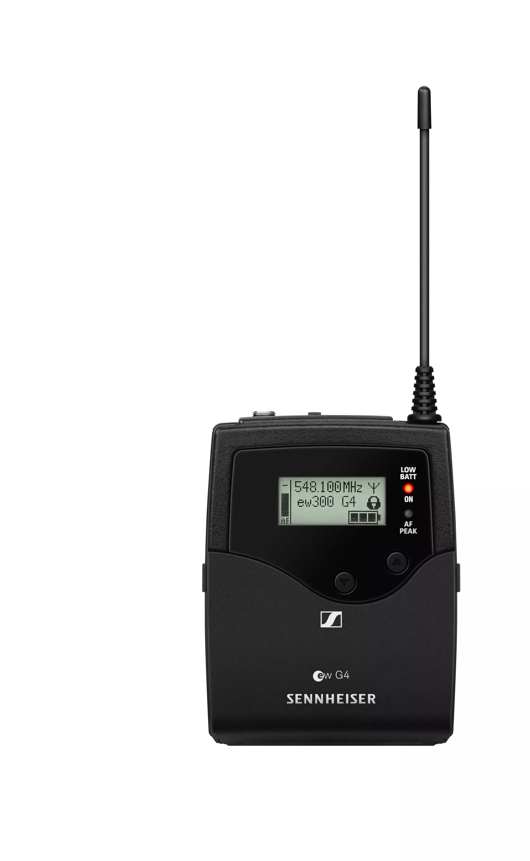 Tasku/vyölähetin Sennheiser EW 300 G4-järjestelmiin. Eri taajuusvaihtoehtoja.