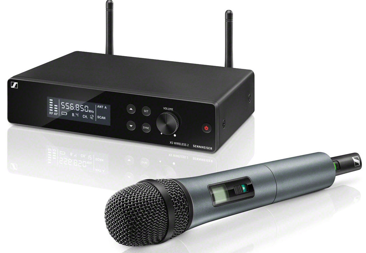 The XS WIRELESS 2 VOCAL SET is an easy to use all-in-one wireless system for singers and presenters featuring Sennheiser’s renowned evolution microphone capsule e865 (condenser, super-cardioid) to capture every detail. True Diversity receiver in a metal housing and rackmount kit included.