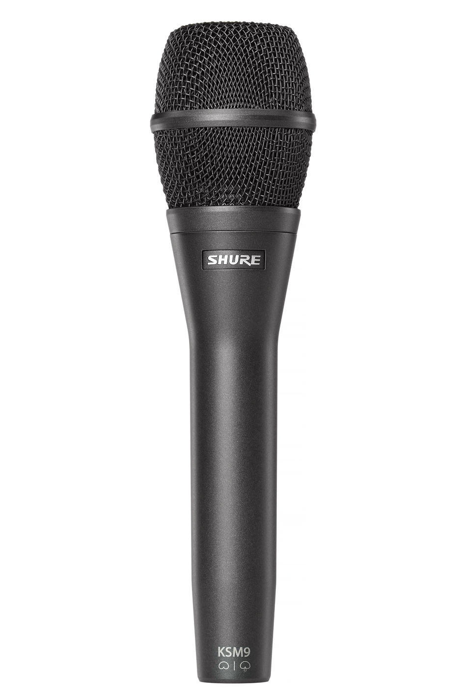 Engineered to exacting standards, the KSM9 reveals nuance and subtlety in a microphone optimized for the most demanding live environments. With its dual diaphragm design and switchable polar patterns (supercardioid/cardioid), the KSM9 is the choice for the world's most accomplished vocal performances.