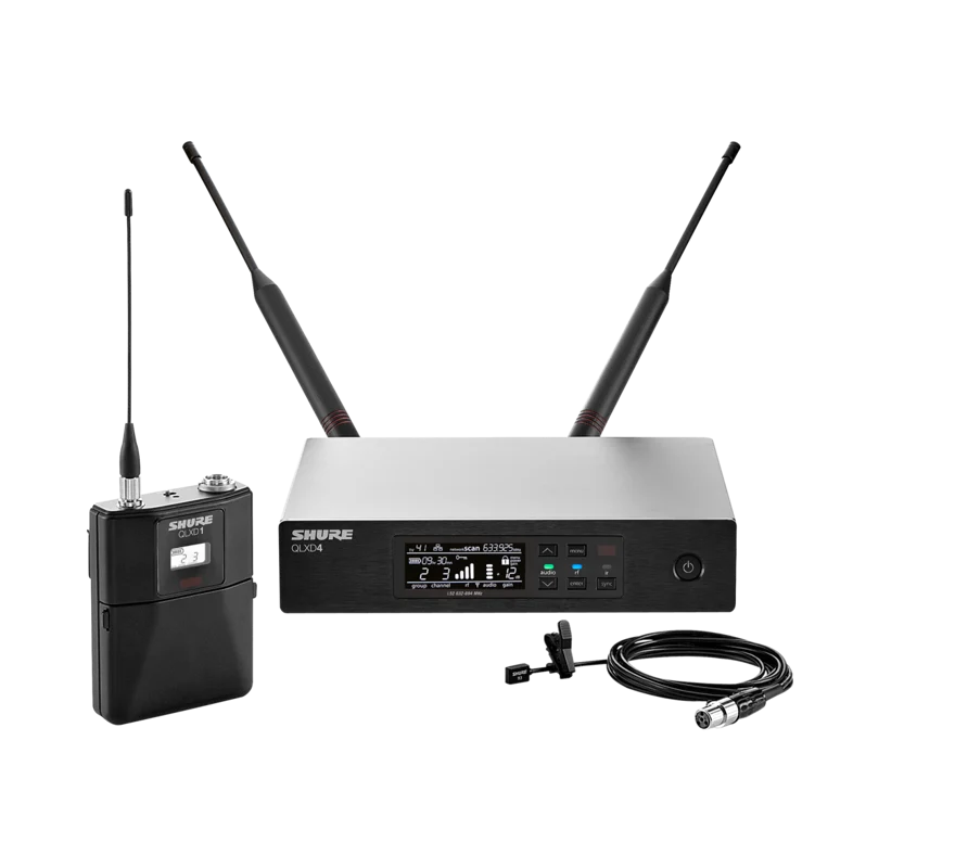 This system is available as QLXD14/93. It contains a QLXD1 transmitter , a WL93 Lavalier microphone and a QLXD4 receiver.