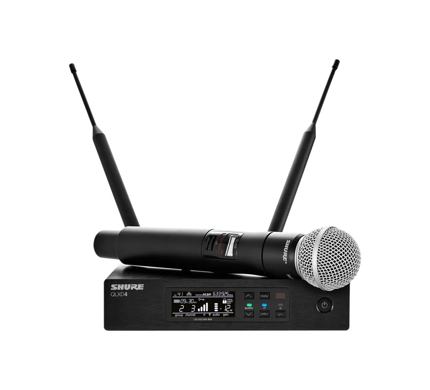 - Varustettu kiinteällä vastaanottimella, käsilähettimellä ja Shuren legendaarisella SM58A -mikrofonikapselilla