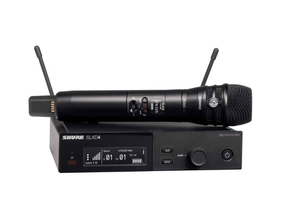 Shrue langaton käsimikrofonijärjestelmä SLXD2/KSM8B käsilähettimellä, sekä SLXD4 vastaanottimella.