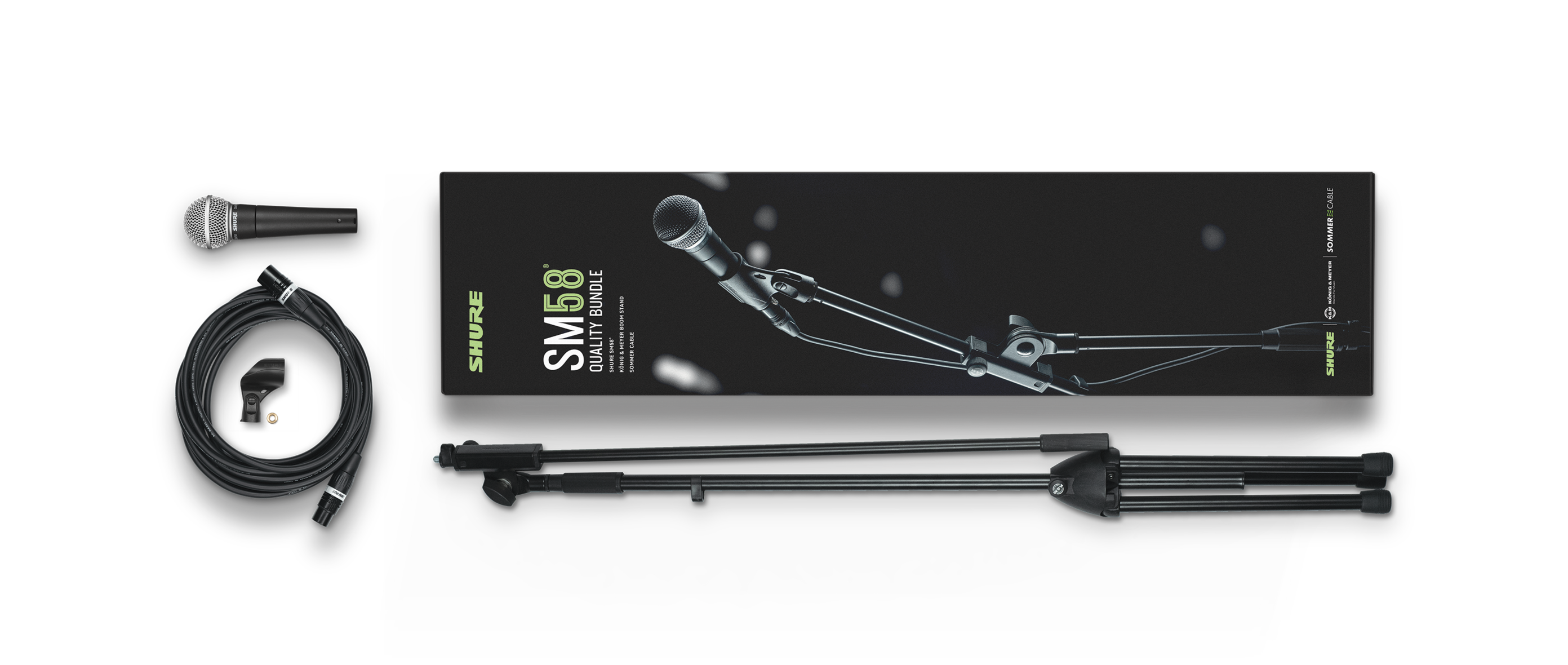 - SM58 mukana mikrofonitelineadapteri ja kantopussi