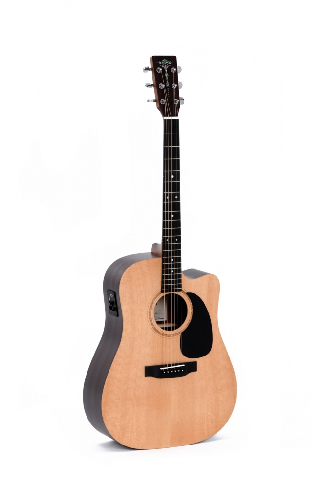 Sigman DTCE on dreadnought -mallinen elektroakustinen kitara kokopuisella sitkankuusikannella, soololovella ja Sigman etuasteella.