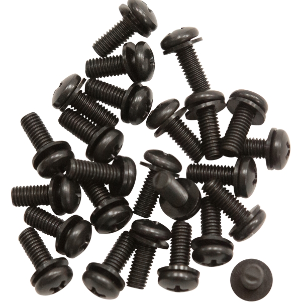 SKB telineruuvit ja aluslevyt (25/kpl). Täydellinen erilaisten elektronisten laitteiden kiinnittämiseen SKB-räkkeihini, joissa on telinekiskot.