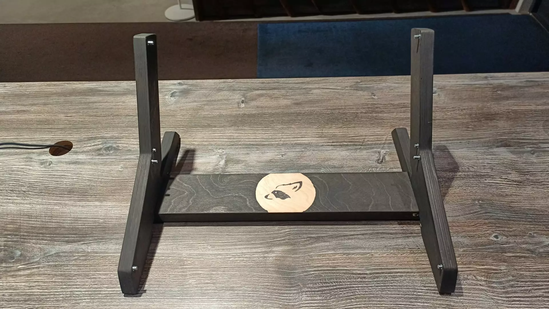 Tyylikäs puinen teline ala- ja ylätasolla Softube Console 1 mk2 ja Fader laitteille.