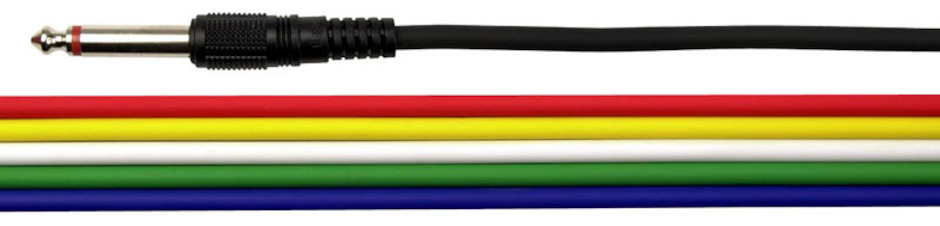 6 kpl pakkaus eri värisiä patch-kaapeleita. Liittimet 6,3 mm monoplugi, kaapeleiden pituus 2,1 metriä.