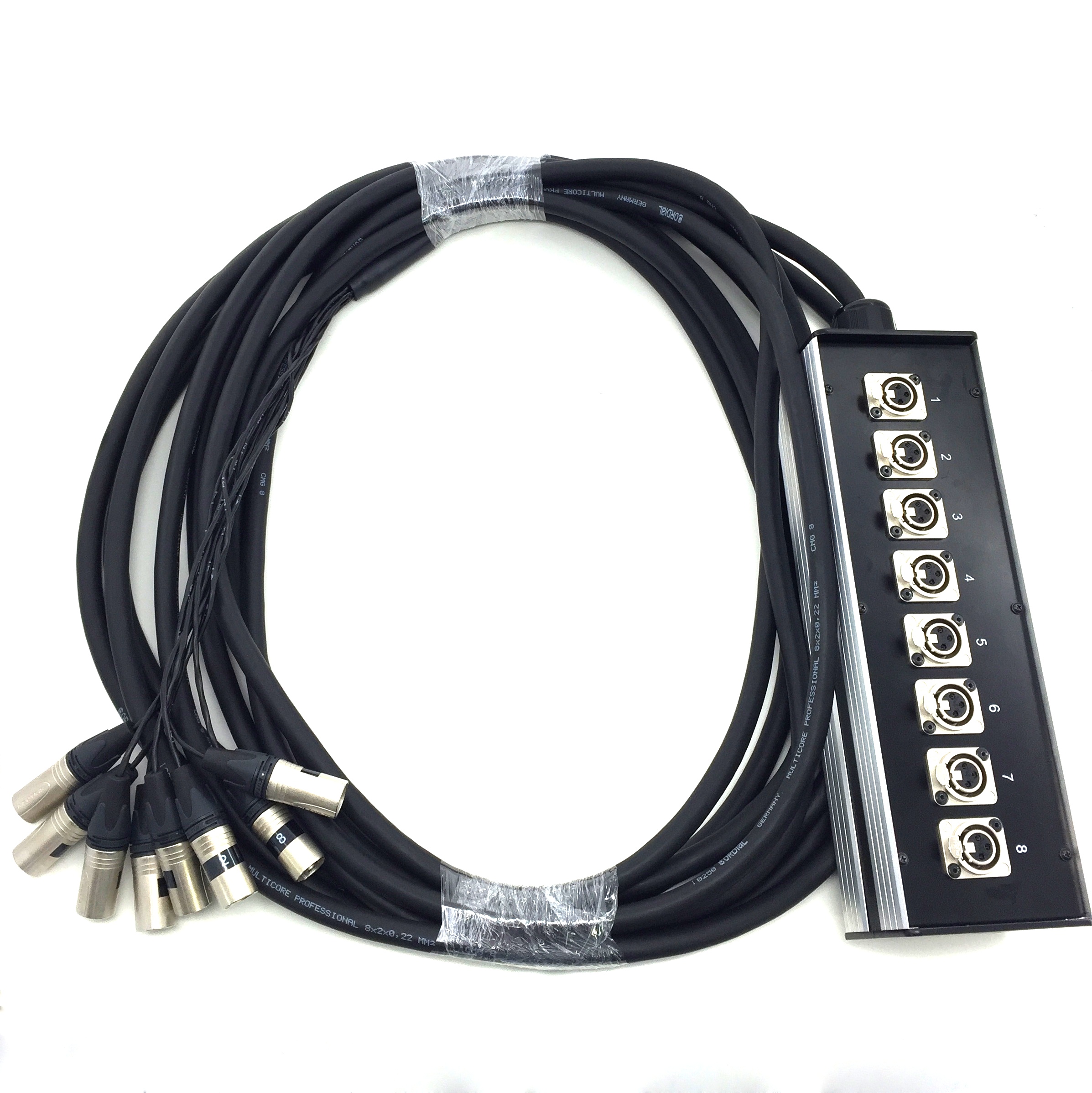 Laadukas kaapeli, viuhkapää 8:lla Neutrikin XLR-uros liittimellä. Metallinen, tanakka lavarasia 8:lla XLR-naaras liittimellä.