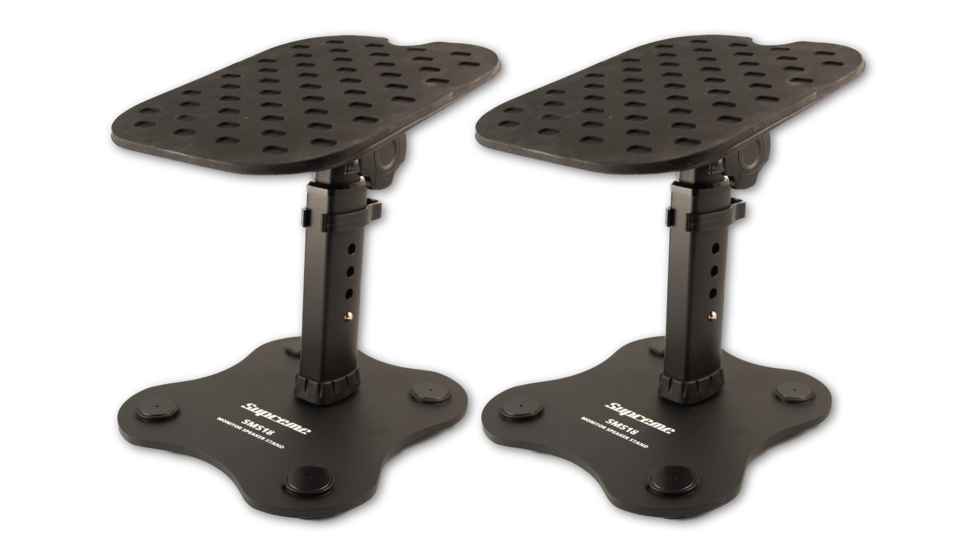 Supreme SMS18 studiomonitorien pöytätelineet minimoivat pöytälevystä syntyviä heijastumia ja nostavat kaiuttimet optimaaliselle kuuntelukorkeudella. Telineet vähentävätkin huoneakustiikkaan liittyviä ongelmia, ja kaiuttimien äänenlaatu paranee tarkemman ja tasapainoisemman toiston myötä.