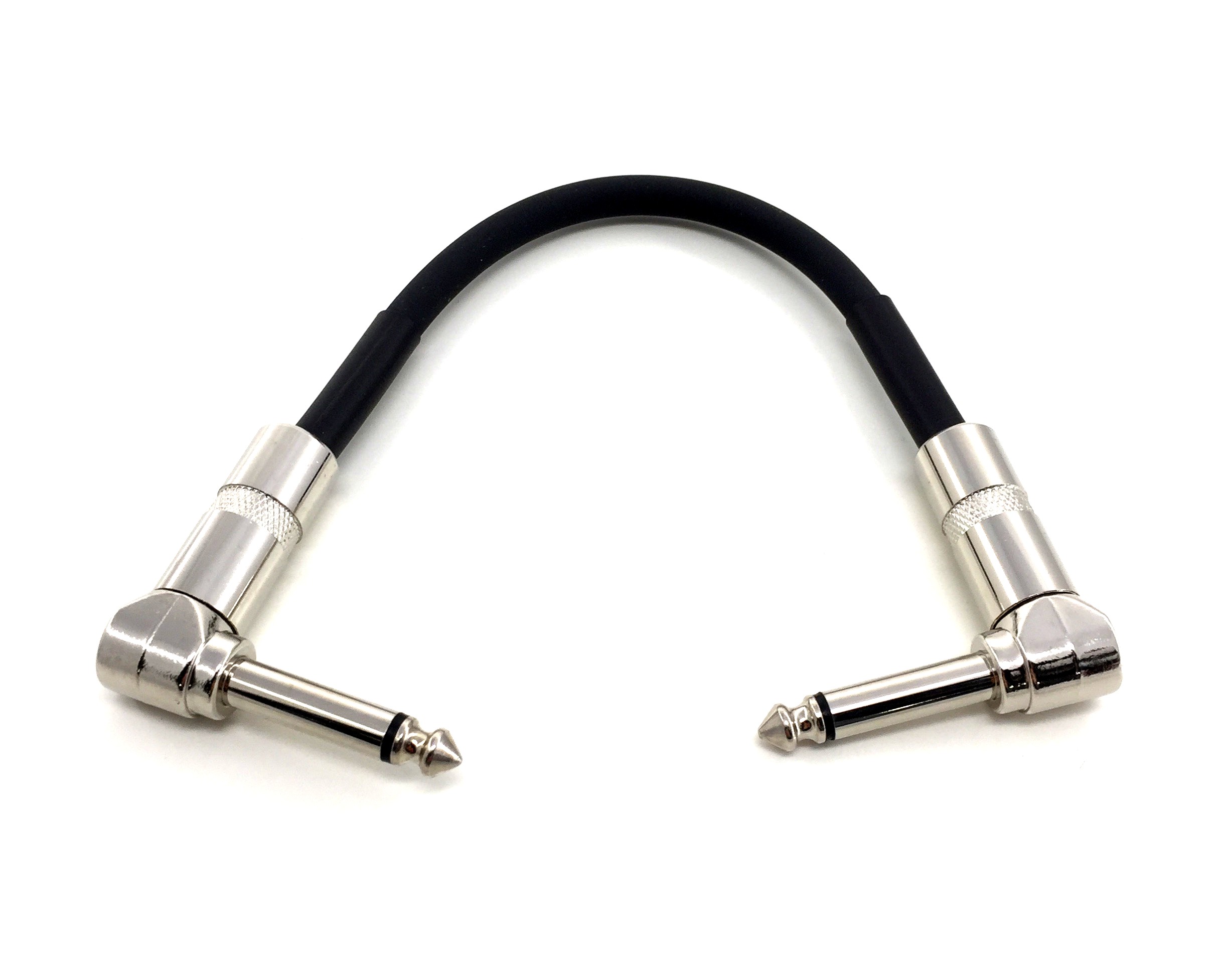 6,3mm kulmamonoplugi kaapeli esimerkiksi kitaraefektien väliin. Juotetut metalliliittimet.