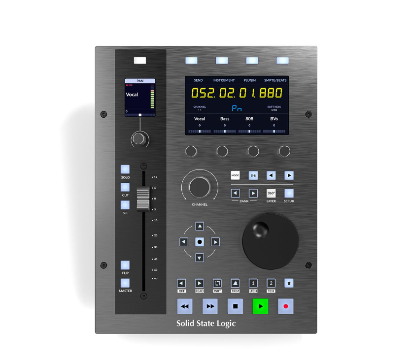 - 2 x korkearesoluutioinen näyttö, mukaan lukien suuri 4,3" TFT-LCD-näyttö visuaaliseen palautteeseen DAW-raitojen nimistä, parametreista, aikanäytöstä, SSL Meter -laajennus ja 360°-yhteensopivat kanavanauhat SSL Plug-in Mixerissä.