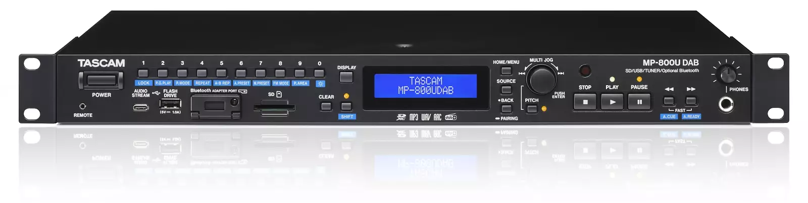 Tascam MP-800U DAB on monipuolinen äänentoistolaite kiertueille ja kiinteille asennuksille. Se mahdollistaa toiston SD- tai USB-muistitikulta tai sisäisestä DAB/FM-radiovastaanottimesta, siinä on USB D/A-muunnin ja se tukee myös suoratoistoa Bluetoothin kautta lisävarusteena. Ammattimaisten ominaisuuksiensa ansiosta MP-800U DAB tarjoaa korkealaatuista ja luotettavaa suorituskykyä ravintoloille, hotelleille, urheilu- ja viihdekeskuksille sekä muille ammattimaisille äänentoistojärjestelmille.