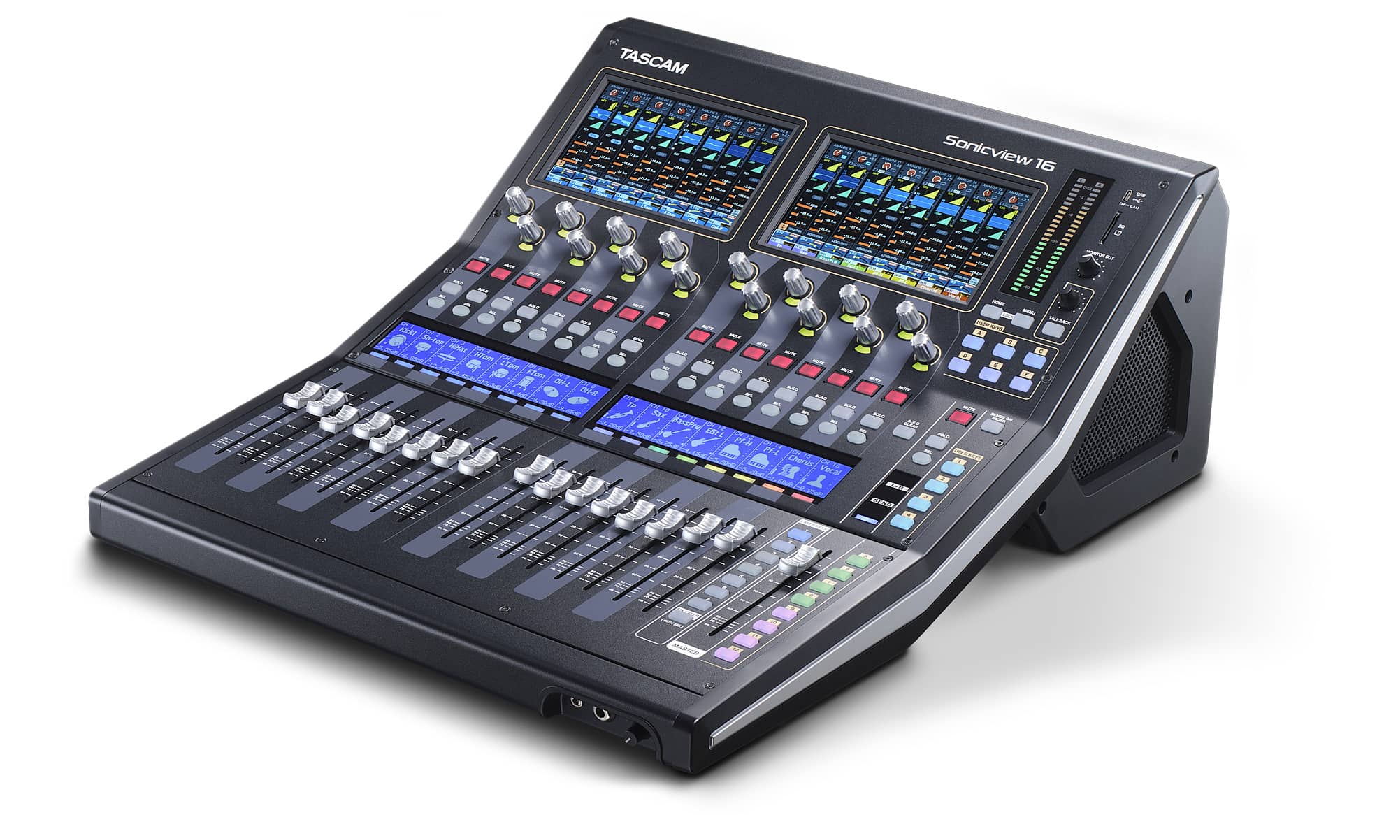 Sonicview 16 tarjoaa 16 fyysistä tulokanavaa moottoroiduilla fadereilla ja Tascamin huippuluokan 1 HDIA-mikrofonien esivahvistimilla.