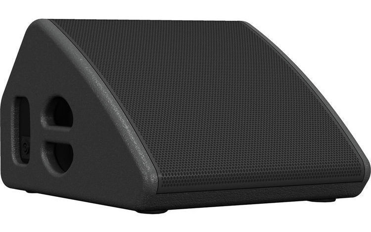 The TURBOSOUND TMW-112 is a compact 1,400 Watt switchable passive/bi-amped floor monitor consisting of a co-axial carbon fibre loaded 12" neodymium low frequency and titanium dome 1" neodymium high frequency combination driver in a reflex loaded enclosure designed for concert touring. The co-axial drive unit is matched with an exponential horn flare for improved acoustic loading and controlled coverage. Both HF and LF coils utilise the same neodymium magnet assembly, which gives better efficiency and reduced weight. This allows the creation of a minimal footprint monitor wedge which, combined with a35° projection angle and 60° horizontal by 40° vertical dispersion pattern, is ideal as a vocal monitor on smaller stages where space is limited, while its low profile maximises audience sightlines.