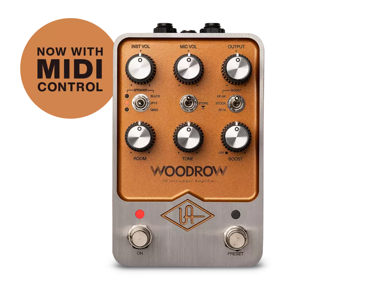 UAFX Woodrow ’55 Instrument Amplifier -pedaali tuottaa käyttäjälle legendaarisen amerikkalaisen tweed-putkivahvistimen soundin. Makea puhdas ja tietysti grunge-särö. Näitä kuuluisia tweedejä käyttivät artistit The Eaglesista Chuck Berryyn ja Neil Youngiin.
