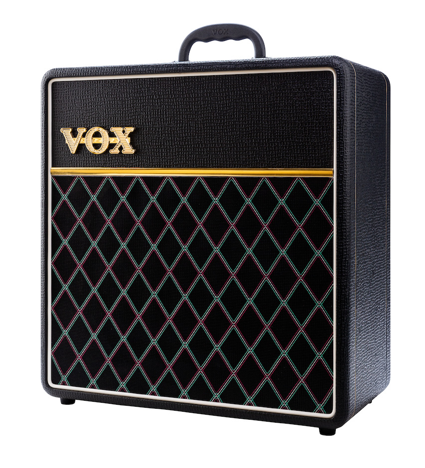 Vox AC4 Custom Vintage Black erikoismalli on putkivahvistin kitaralle 12" kaiutinelementillä ja tyylikkään mustalla etukankaalla.