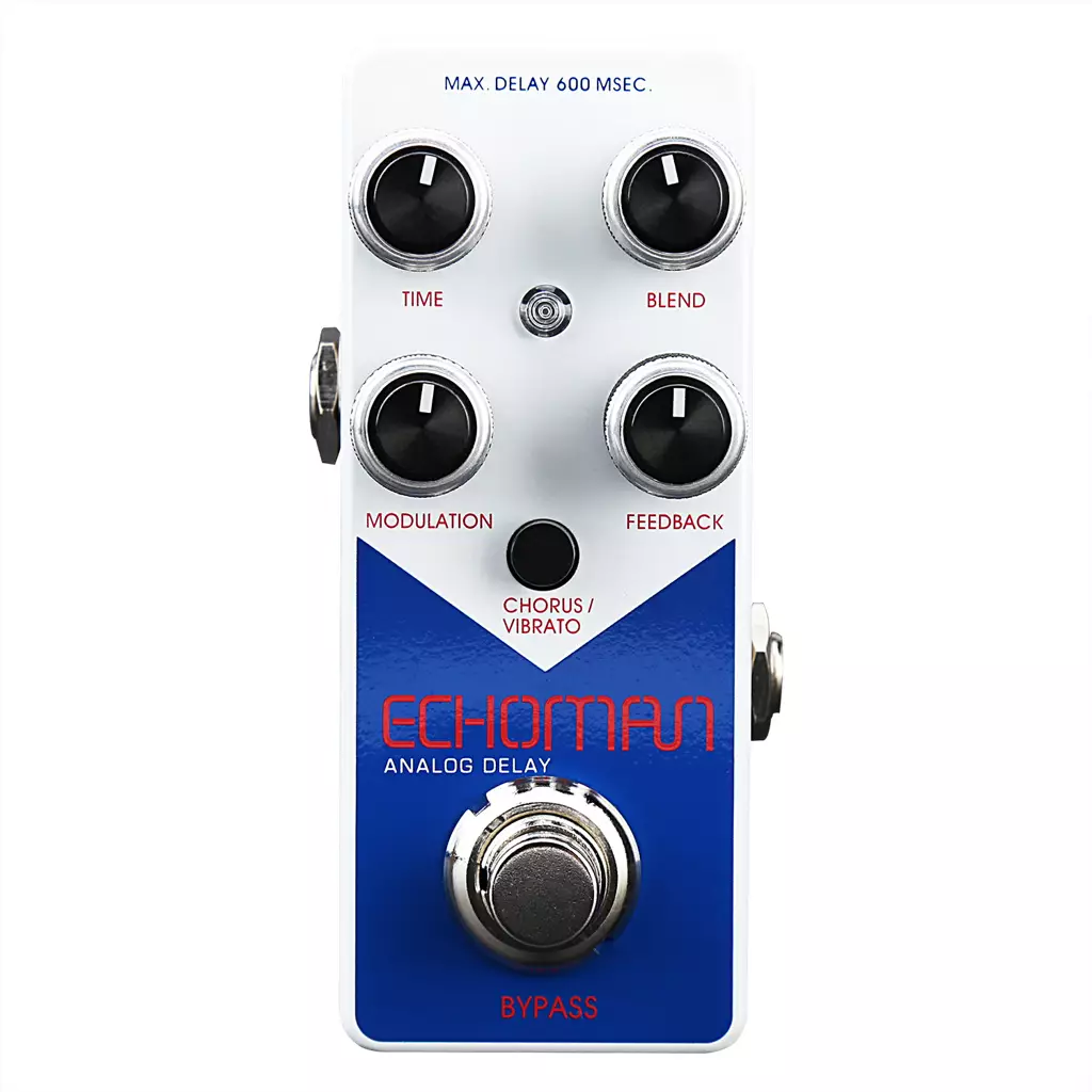 Legendaarisen Howard Davisin suunnittelema Echoman Analog Delay on kompakti monoversio Memory Analog Delay -yksiköstä. Mikrokokoinen pedaali on tavallaan moderni, päivitetty versio Davisin ikiklassikosta, Electro-Harmonixin DeLuxe Memoryman -delaysta vuodelta 1976 (monen mielestä maailman parhaasta delaysta) ja toisintaa BBD-viivettä 600 millisekuntiin asti. Bufferoitu bypass 900 kilo-ohmin sisääntuloimpedanssilla varmistaa, ettei kitaran mikrofonien kirkkaus katoa sisääntulon kuormaan. Laaja taajuuskaista mahdollistaa kirkkaammat kerrannaiset pidemmilläkin toistoilla.