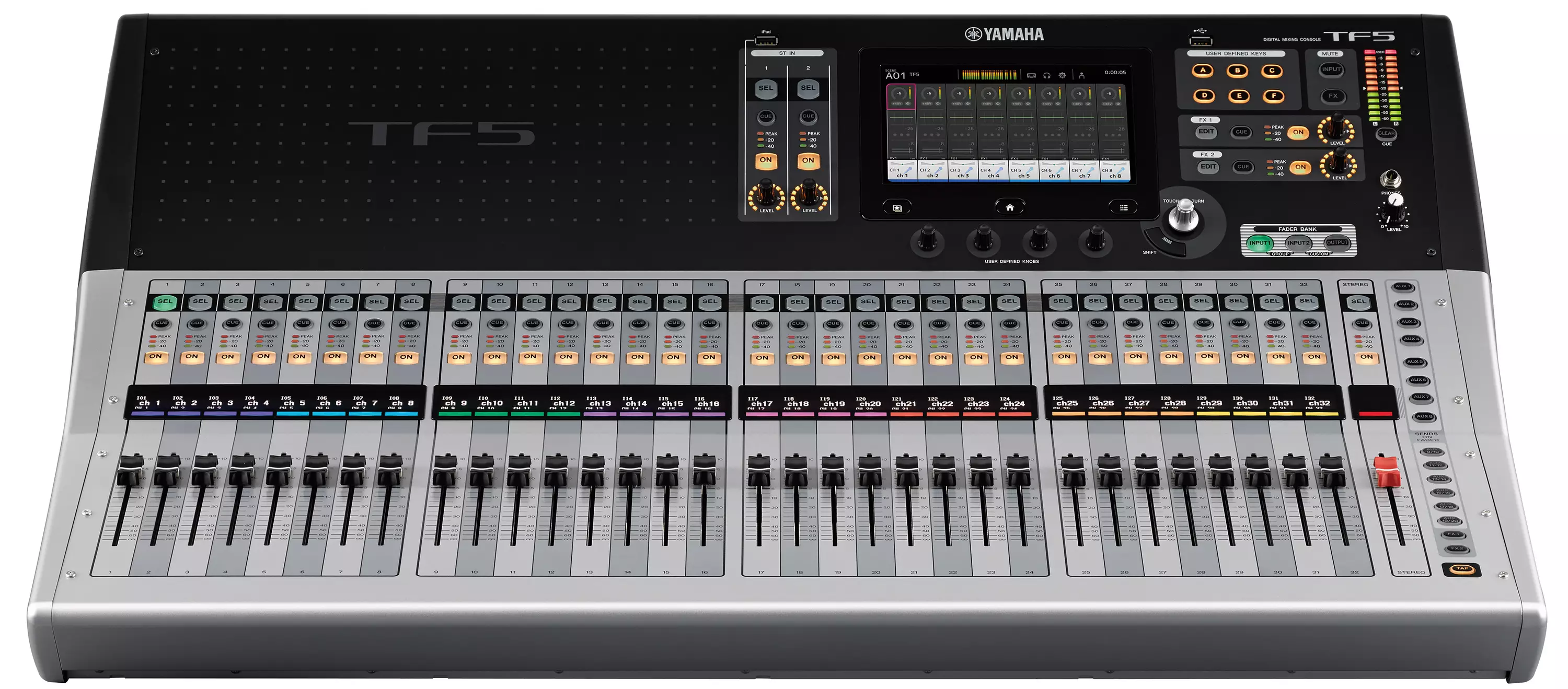 The TF series combines Yamaha know-how with new input from the field and the latest touch-screen technology to deliver an evolved experience in console operation. Smooth setup and operation, practical presets and scenes, refined design, and software applications that integrate seamlessly with the entire system: these elements comprise TouchFlow Operation, a new concept in console interfaces that offers unprecedented comfort and convenience in small consoles, for a wide range of users and applications.