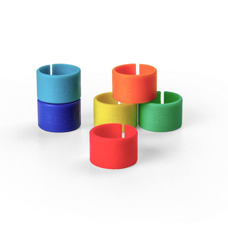 Zoom LiveTrak P8:n kanavailmaisimien värejä vastaavat XLR-6c-renkaat sopivat useimpiin XLR-liittimiin.